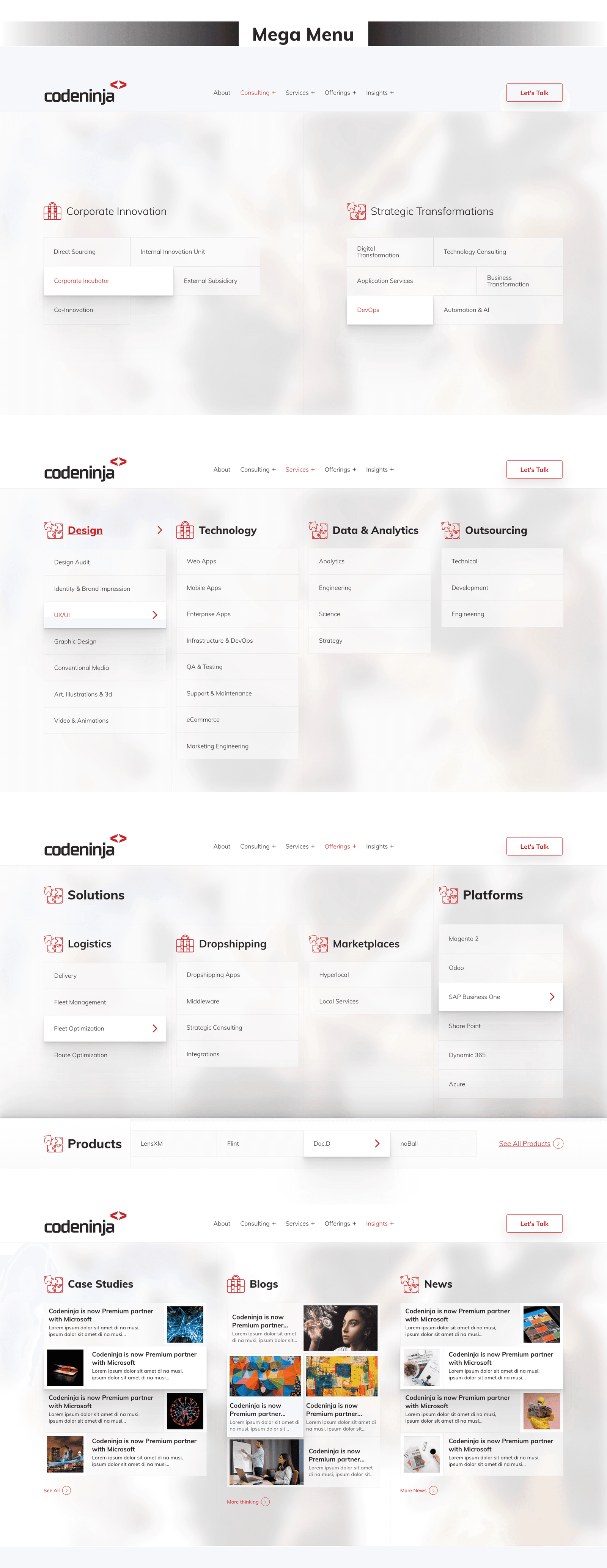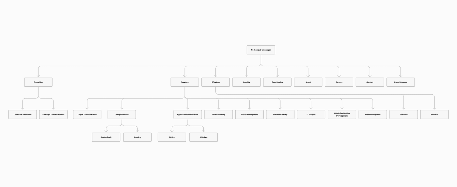 - Develope a content hierarchy that emphasize Codeninja’s main consulting areas, each with a dedicated section.
