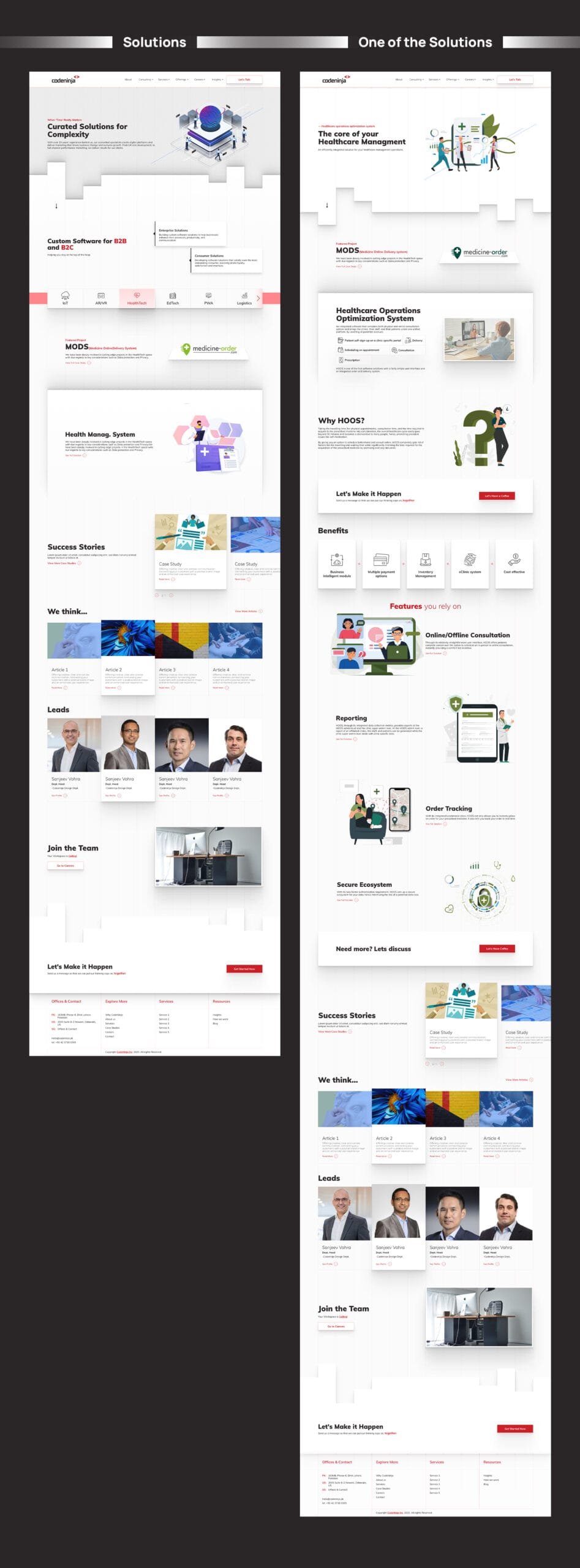 - Chose a modern color scheme with professional, tech-focused visuals that aligned with Codeninja’s identity.