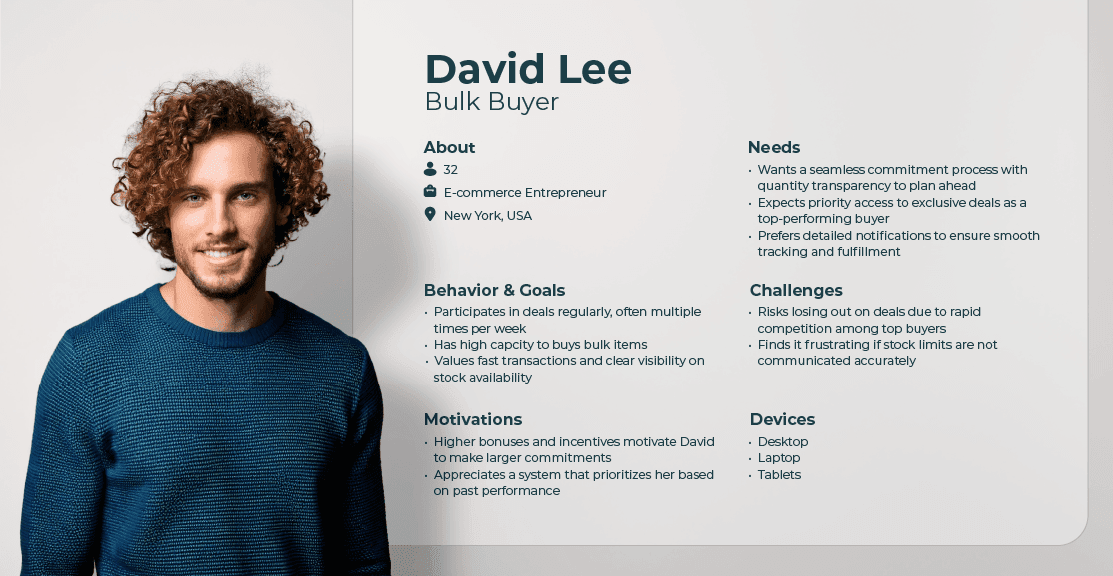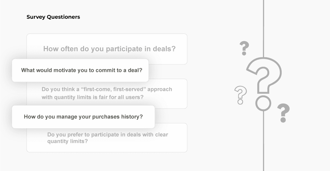 Rapid growth in business and “first-come, first-served” model introduced challenges in managing deal purchasing quantity efficiently. While users expect access to larger quantities, a fair system with predictable outcomes, prefer simplicity and occasional engagement without complex procedures.