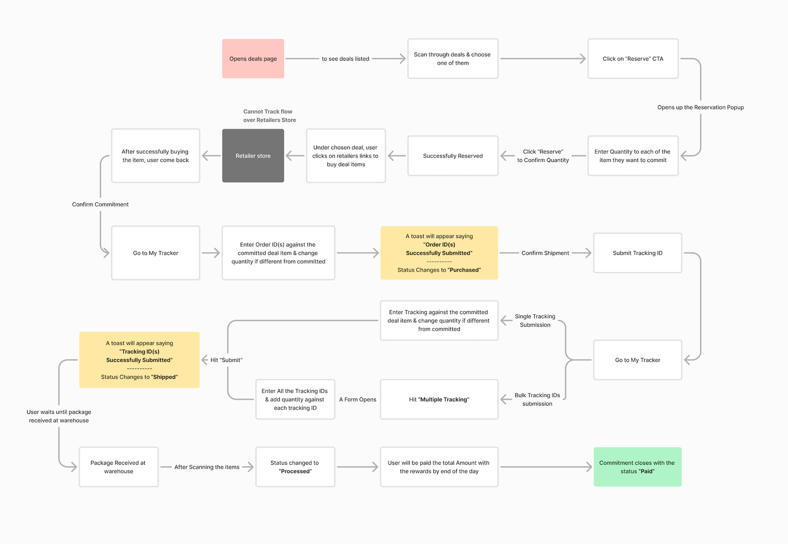 Existing user flow was so simple that they don’t have to commit to any deal, they just send any quantity related to a deal mentioned in the deals page