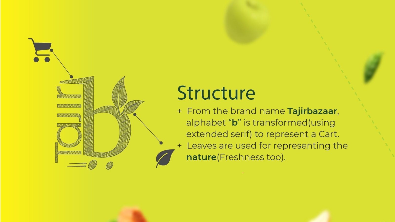 I used a small italic letter “b” to creatively shape a delivery cart, symbolizing the brand’s focus on fast and efficient delivery. To emphasize the freshness of the products, I added leaves on top of the cart, signifying natural and fresh goods.